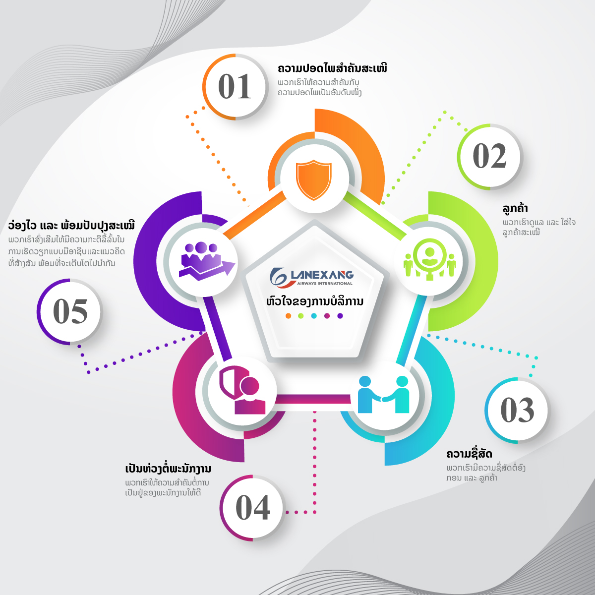 ພວກເຮົາອຸທິດຕົນເພື່ອສ້າງສາຍການບິນ ແລະ ໃຫ້ການບໍລິການຖ້ຽວບິນແບບເຕັມຮູບແບບ ເພື່ອສະໜອງຄວາມຮຽກຮ້ອງຕ້ອງການຂອງລູກ ຄ້າທັງພາຍໃນ ແລະ ຕ່າງປະເທດ ໂດຍຢຶດຖືການບໍລິການລູກຄ້າດ້ວຍຄວາມເປັນມືອາຊີບຂອງຄົນລາວ ຮັກສາຄຸນ ນະພາບຕາມມາດ ຕະຖານສາກົນ ຕາມວິໄສທັດຂອງພວກເຮົາ ອີກໜຶ່ງຄວາມພາກພູມ ໃຈຂອງຄົນລາວ ແລະ ເປັນທາງເລືອກອັນໜຶ່ງໃຫ້ແກ່ຜູ້ໂດຍສານ ທີ່ສາກົນຍອມຮັບ ອີກທັງເປັນສ່ວນໜຶ່ງຂອງອຸດສາຫະກຳສາຍການບິນໃນ ສປປ ລາວ ທີ່ມີຊື່ສຽງ.